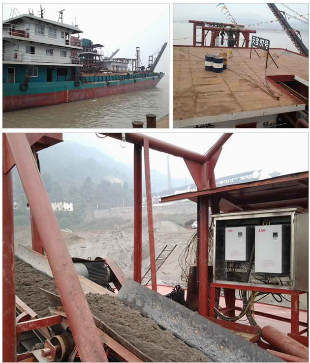 挖沙船對大多數人來說并不陌生,但挖沙船結構卻相對復雜。作為采掘沙石、沙礦的機械設備,并且在采沙、選礦等作業中發揮著巨大的作用,可以稱之為水上聯合工廠。下面簡單介紹一下挖沙船結構及功能。挖沙船一般為電動遷移式或柴油機械動力式。船體采用拼裝式箱型結構。包含有挖掘裝置、篩選裝置、提升裝置、傳送裝置等。通過電機驅動挖斗上料,石塊通過篩選傳由輸送帶傳出,沙子由輸送帶傳到指定地點。大型河道采沙船機械化和自動化程度極高,一條挖沙船船即可成為一個生產單位,可以實行采沙、沙石分離、粗沙細沙分離、附帶金沙提取全過程。